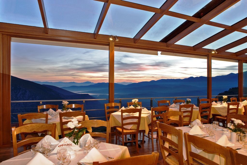 At Parnassos Delphi Hotel's well-known restaurant, "Epikouros", you can enjoy a variety of exquisite Greek and Mediterranean dishes.